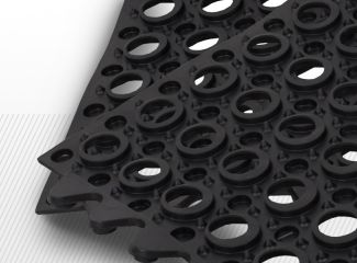 Placa de cauciuc antioboseală, prin suprafata sa flexibilă, antiderapantă, cu forme în relief, facilitează reducerea oboselii cauzate de munca statică de lungă durată. Designul permite îmbinarea mai multor plăci, astfel poate fi acoperită o suprafață mai mare și coezivă.
