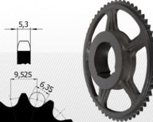 Rotile de lant din fonta se fabrica in variante cu spite pentru a reduce greutatea acestora și implicit a maselor in miscare. Avantajul utillizaraii acestora consa intr-un montaj mult mai simplu, reducand astfel timpii de executie. Materialul rotilor: GG25.